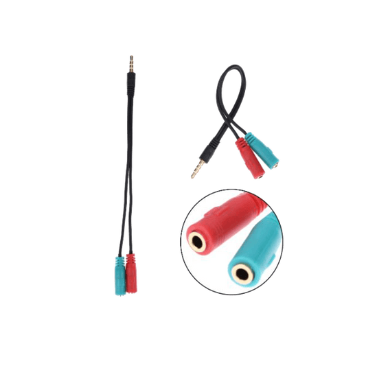 Converter Cable: Single 4 Pole Socket to Two 3.5mm Jacks (Audio & Mic)