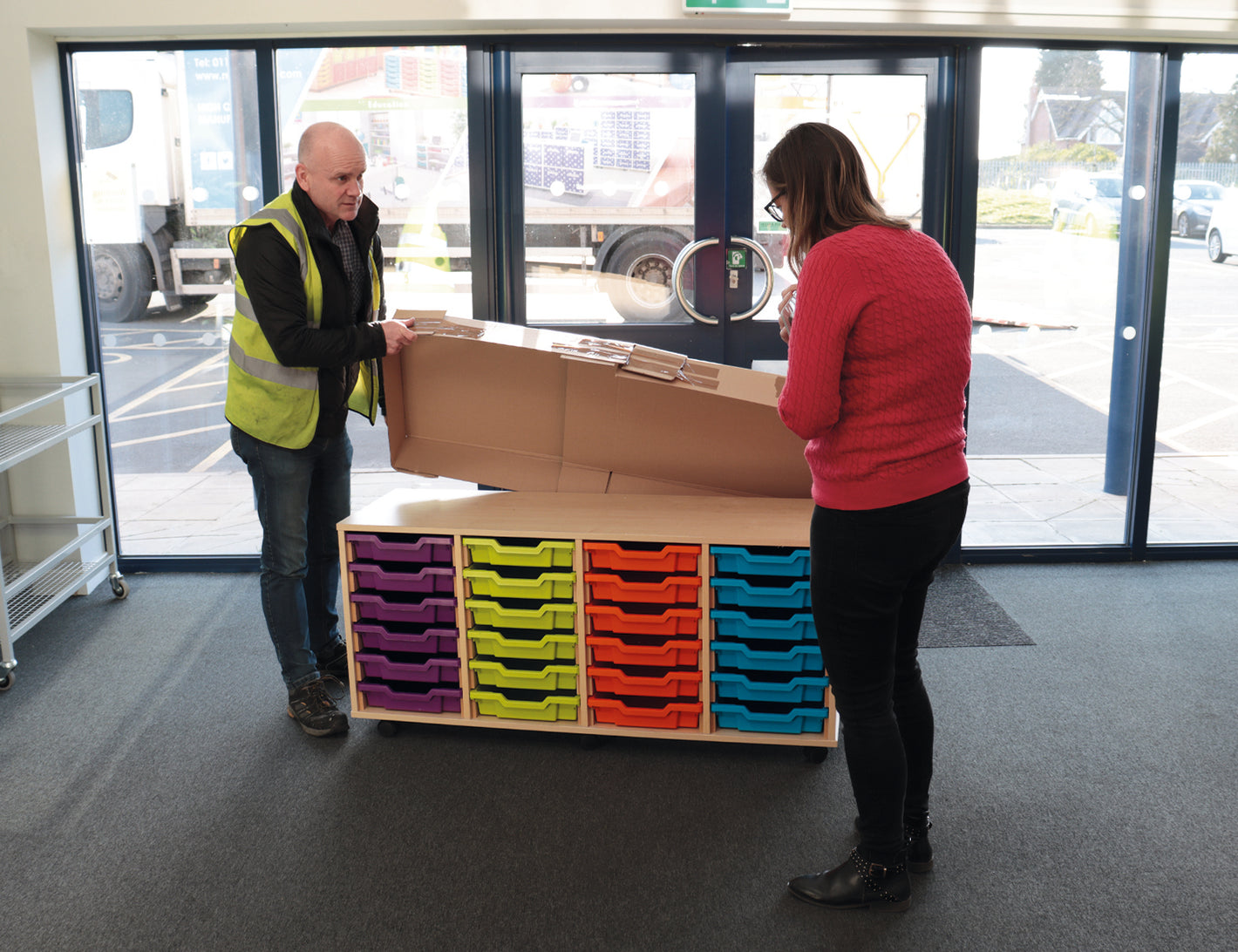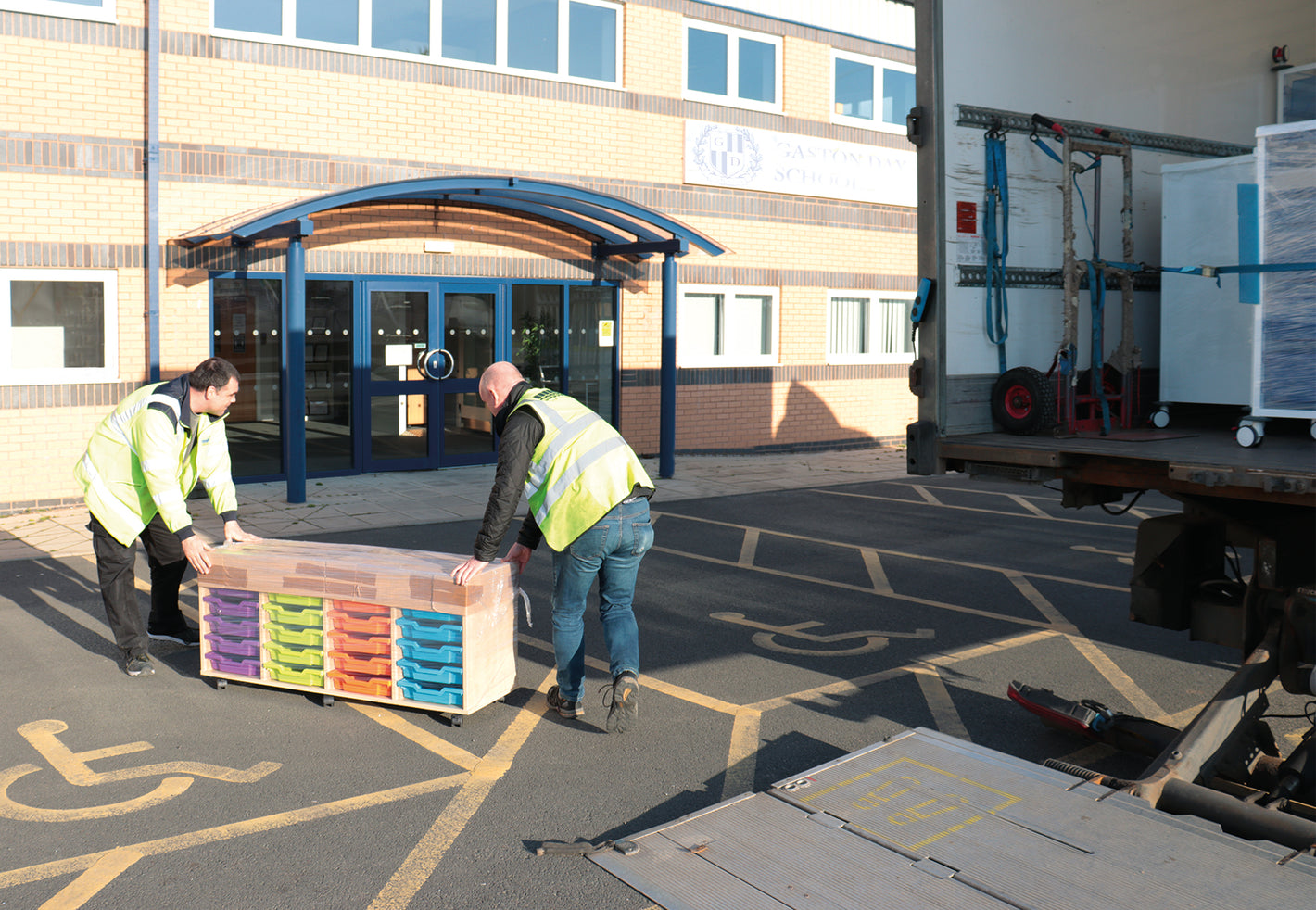 • Goods are delivered in a large van, and wheeled into your building reception. We need access without steps.