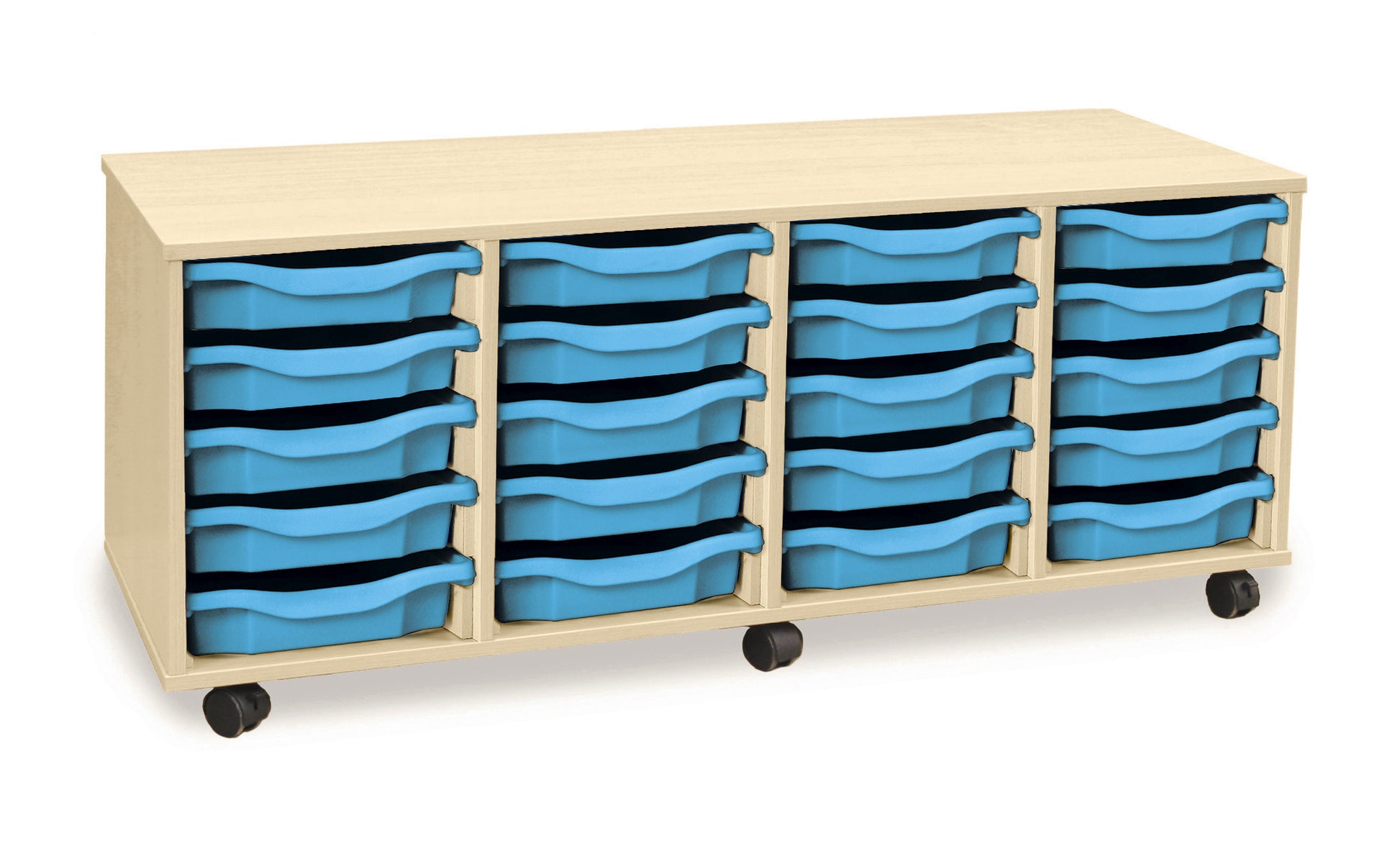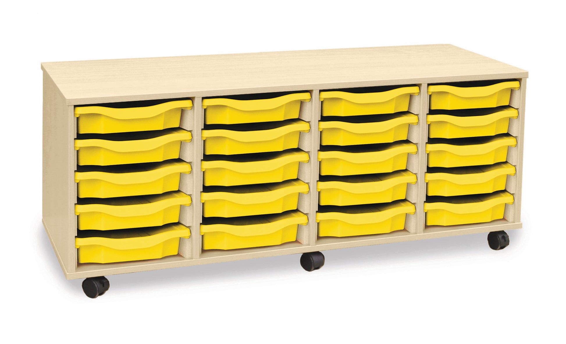 20 tray Maple MFC storage unit, complete with trays and castors (4 Stacks of 5 trays) W1358 x D462 x H531mm (inc castors)