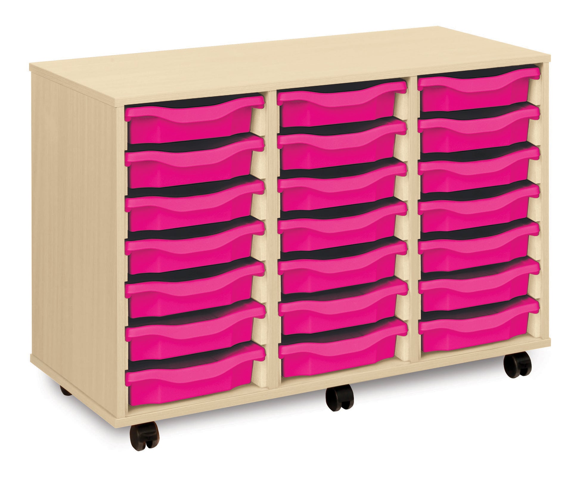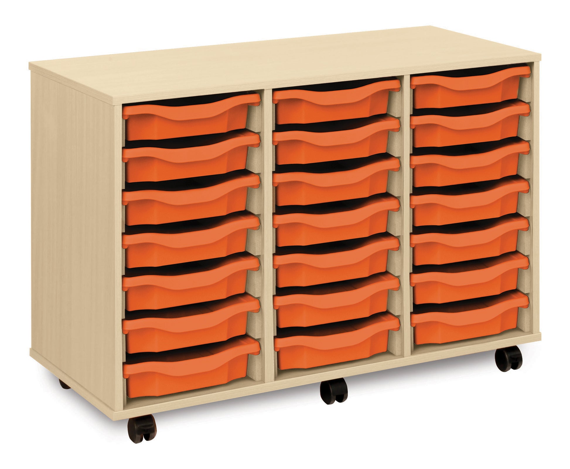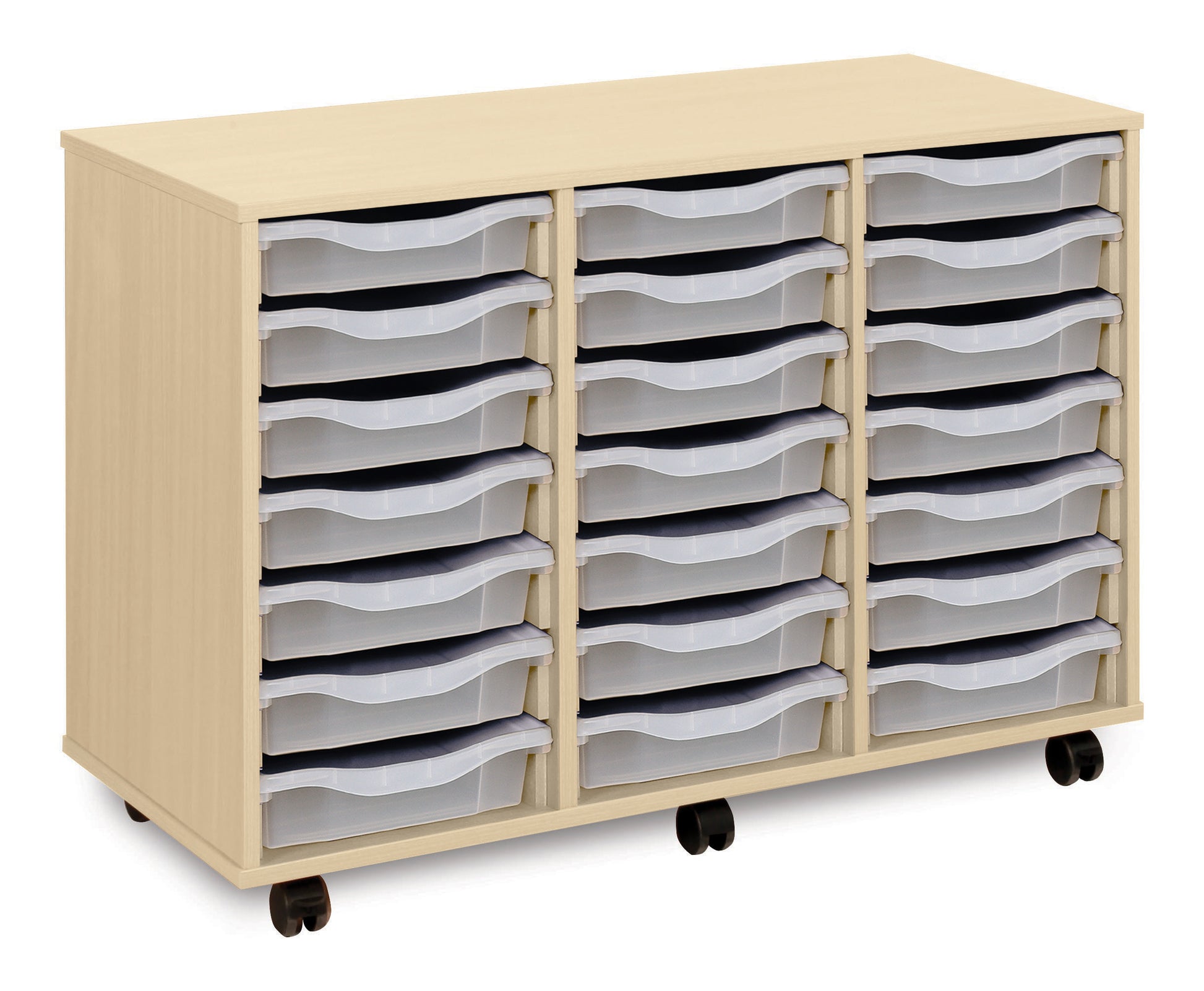 21 Tray Maple MFC storage unit, mobile, complete with castors, trays and/or shelves (3 columns of 7) W1030 x D453 x H703mm (inc castors)