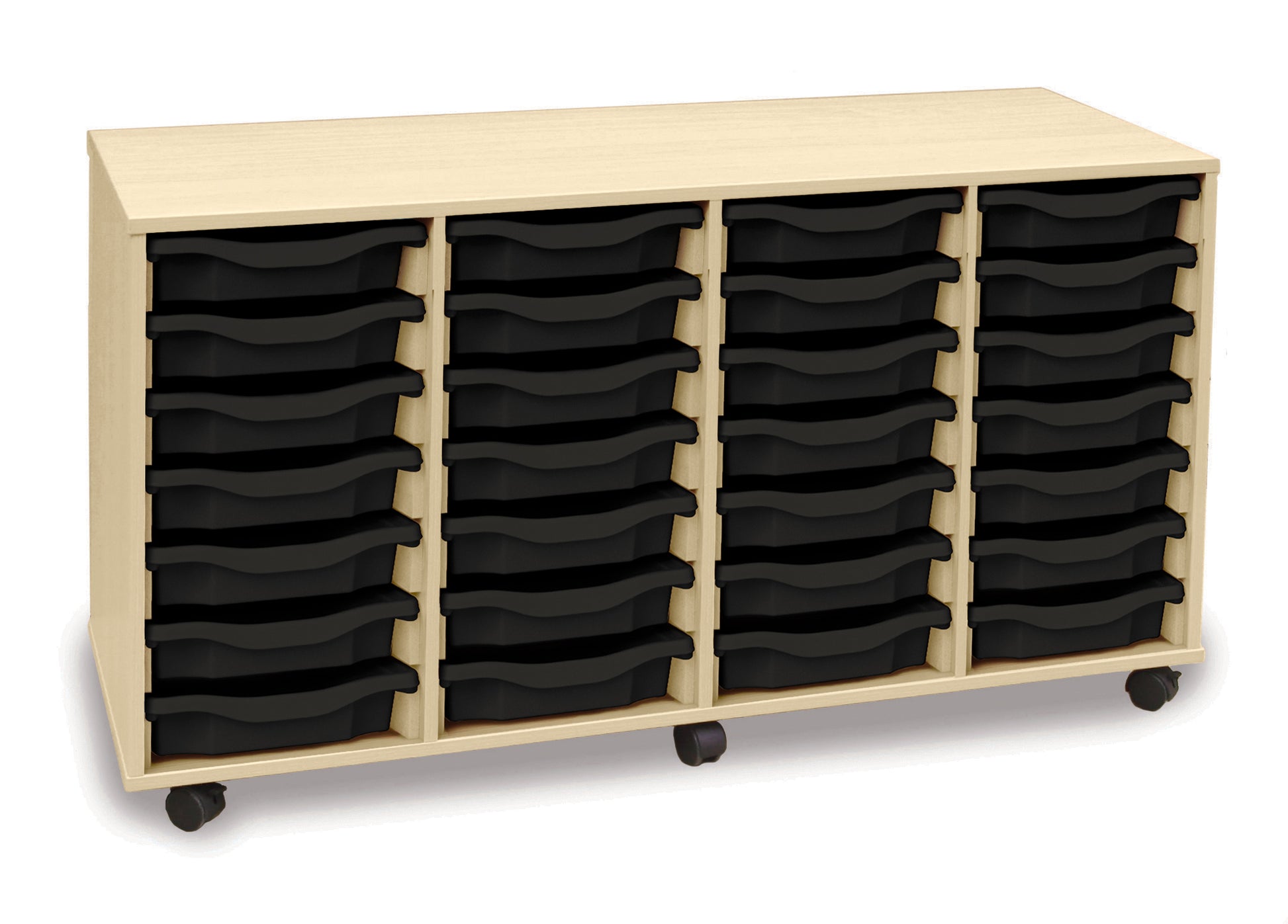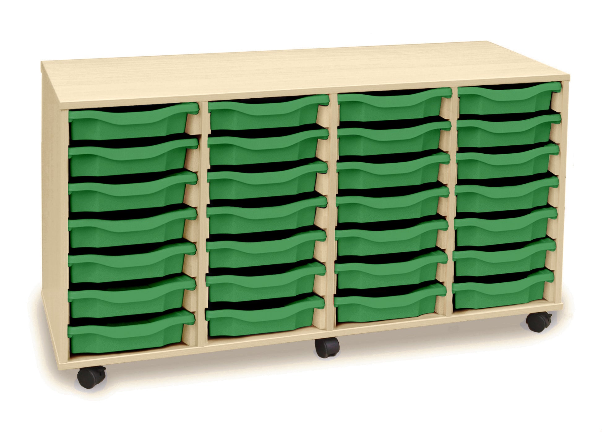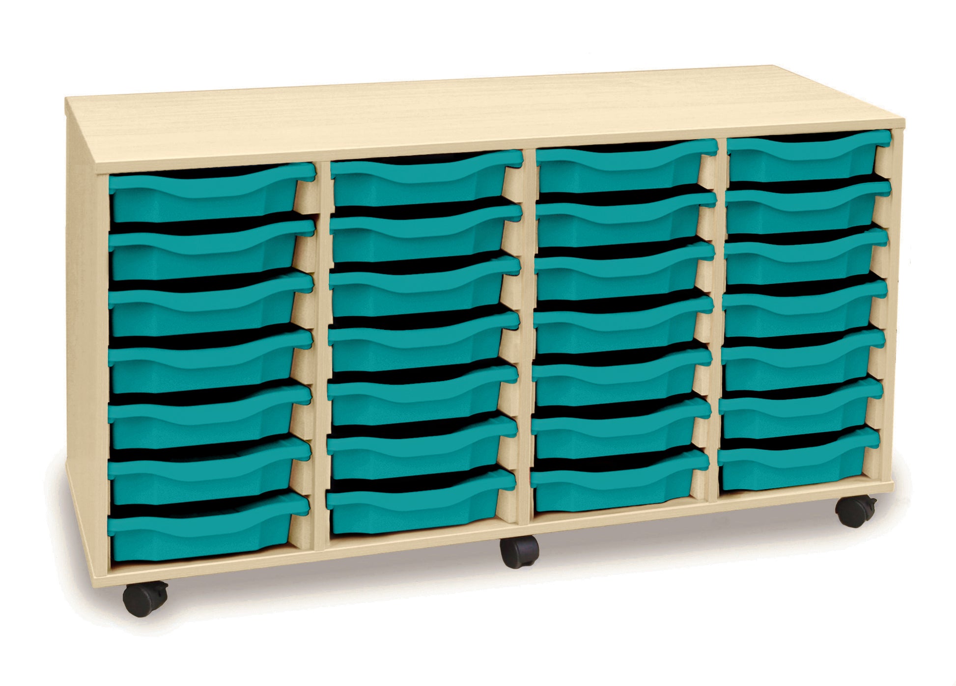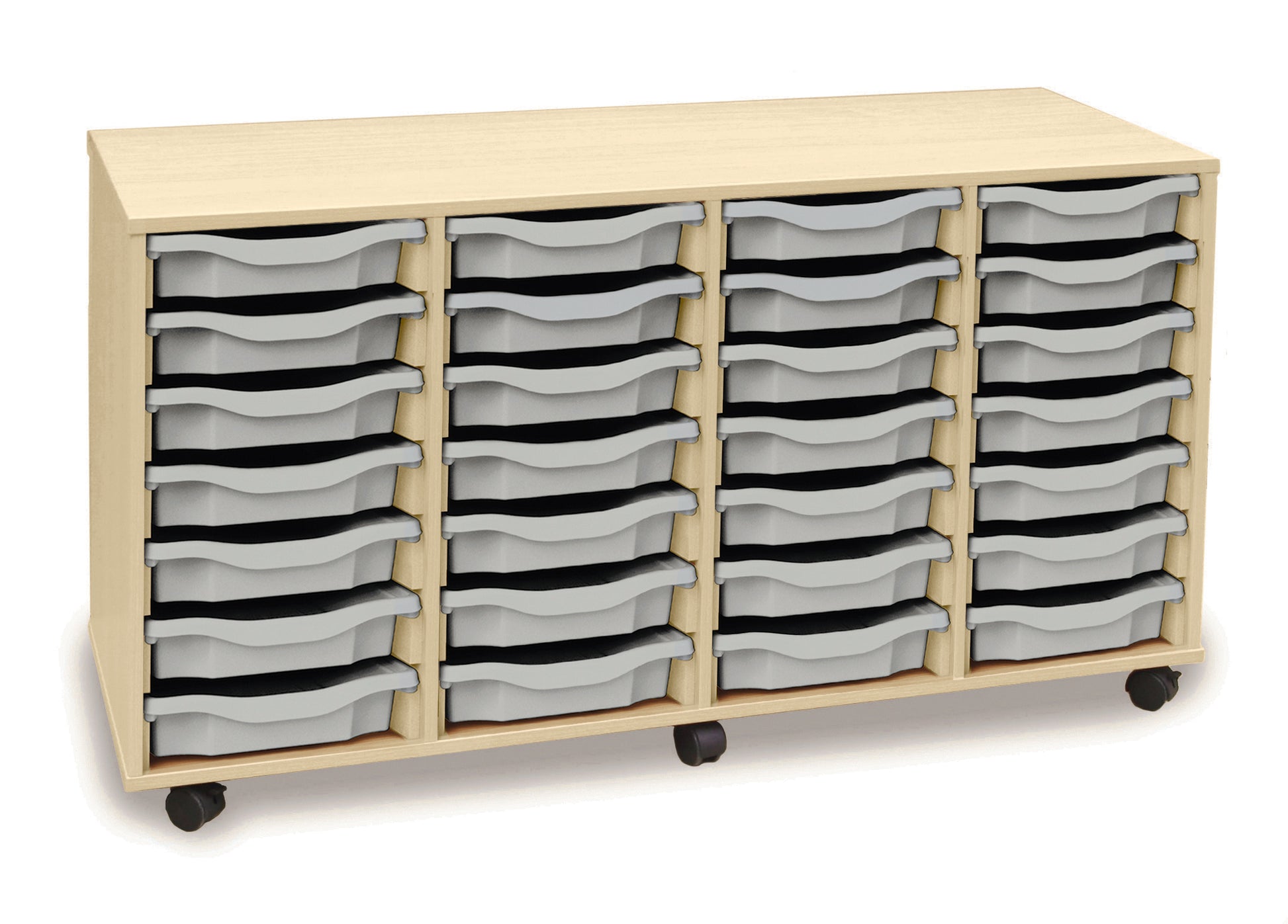 28 tray Maple MFC storage unit, complete with trays and castors (4 Stacks of 7 trays) W1358 x D462 x H703mm (inc castors)