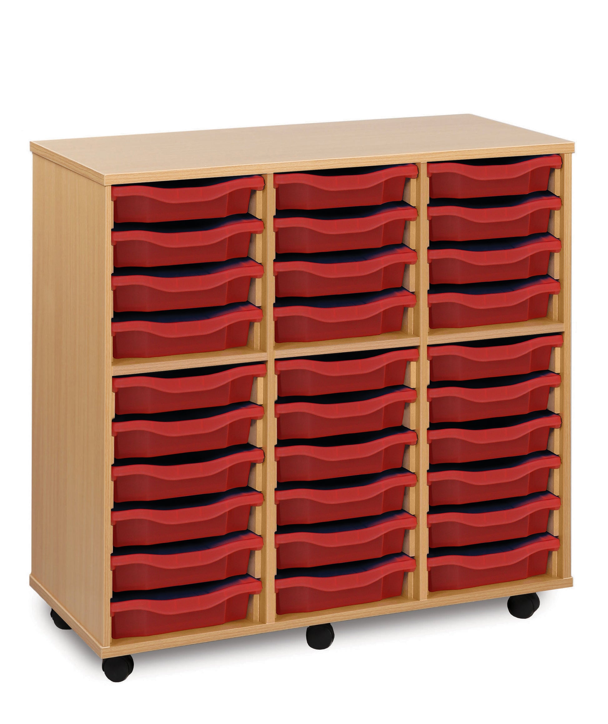 30 Tray Beech wooden storage unit, complete with castors, trays and or shelves. (3 columns of 10). W1030 x D453 x H979mm