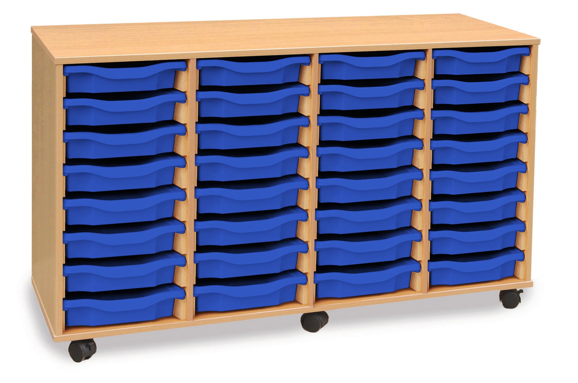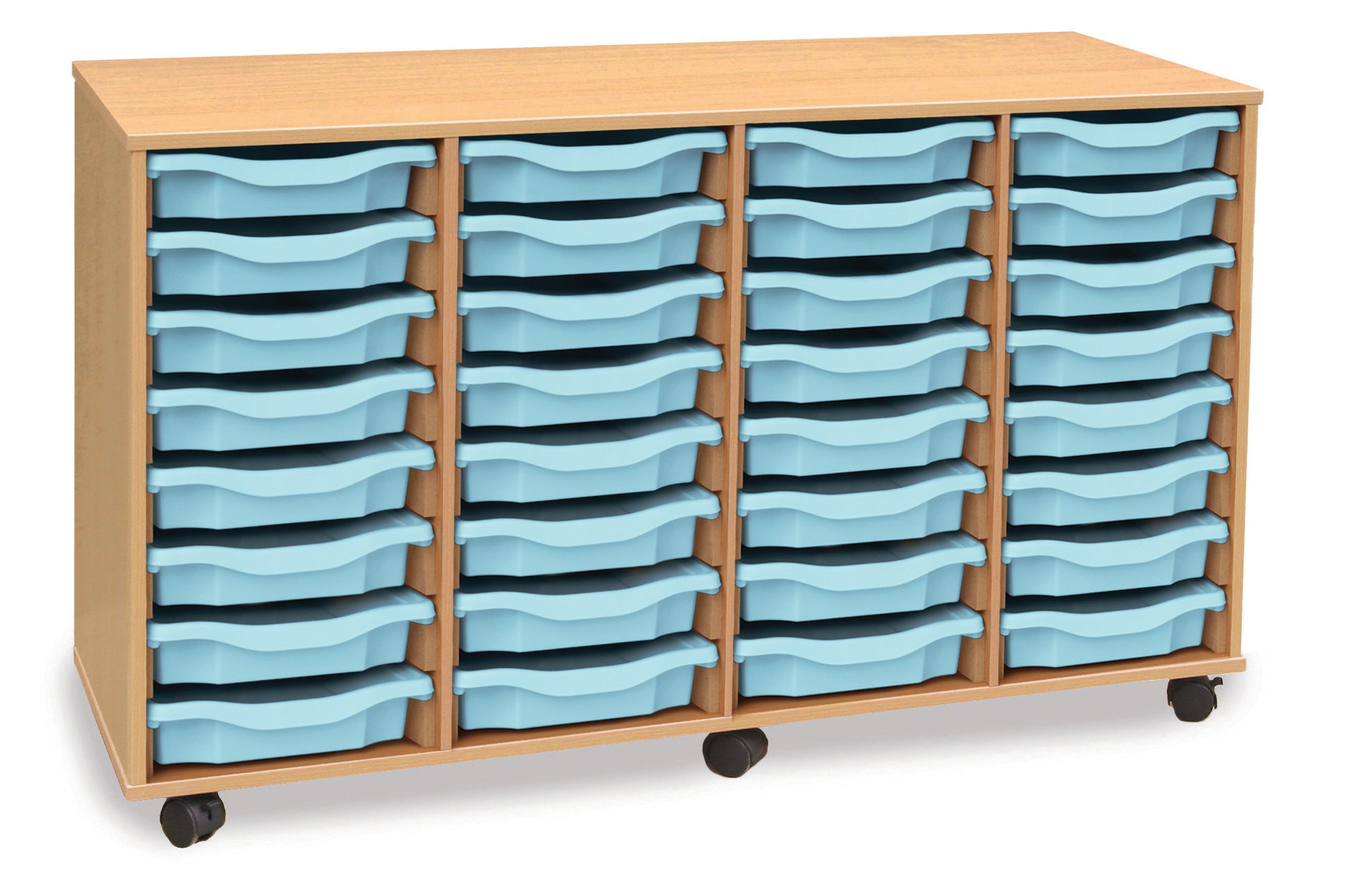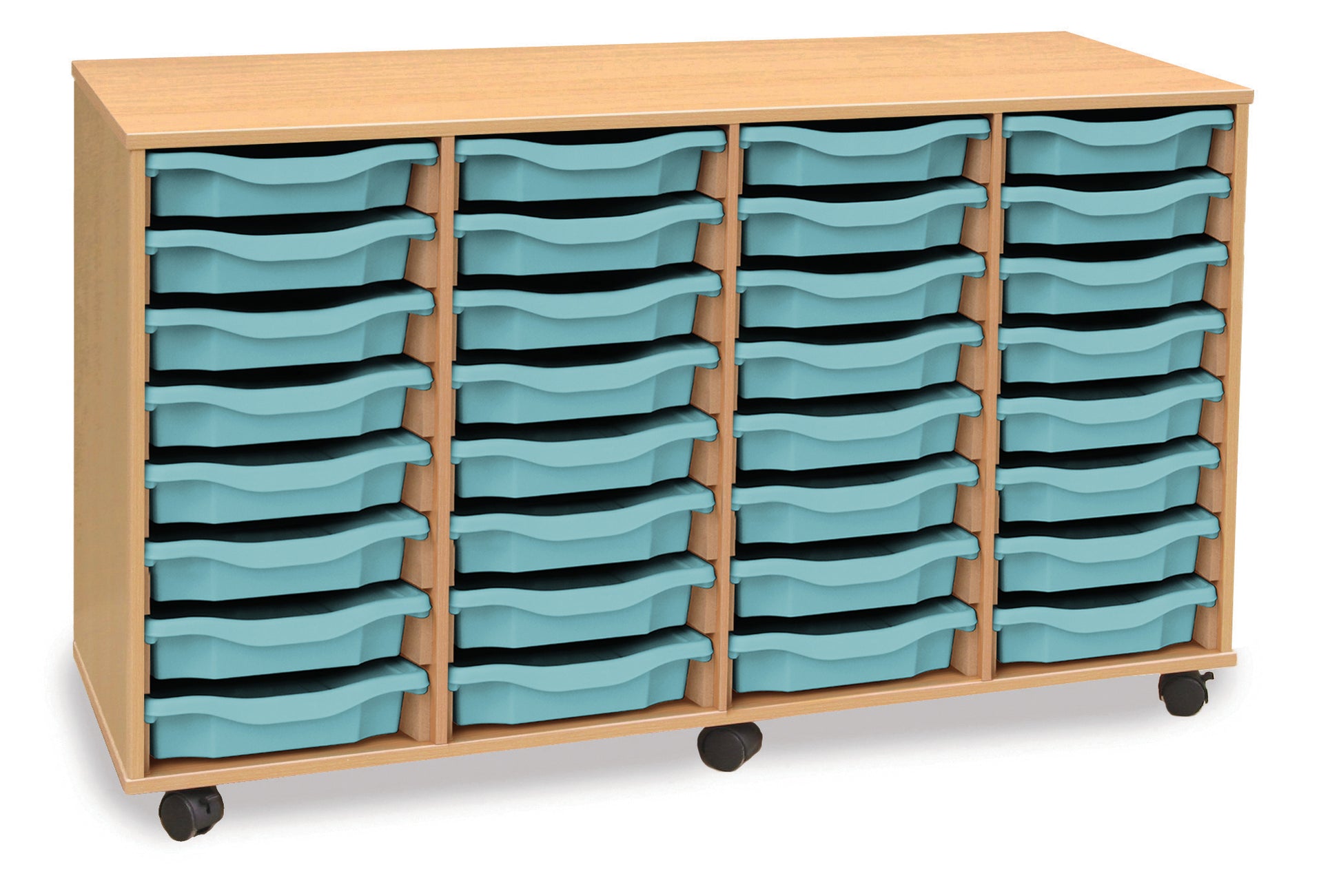 32 tray Beech MFC storage unit, complete with trays and castors (4 Stacks of 8 trays) W1358 x D462 x H789mm (inc castors)