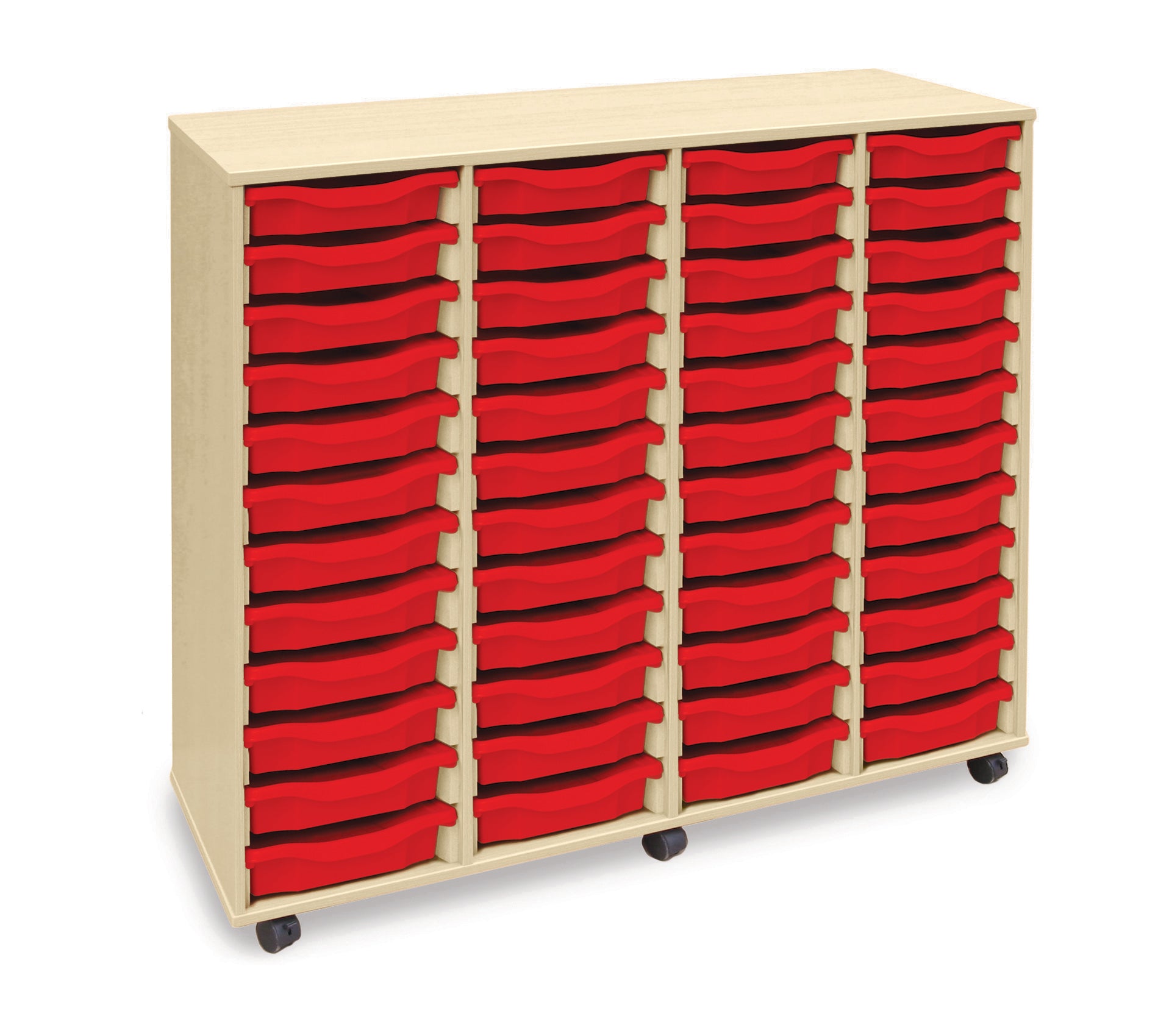 48 tray Maple MFC storage unit, complete with trays and castors (4 columns of 12 trays) W1358 x D462 x H1133mm (inc castors)