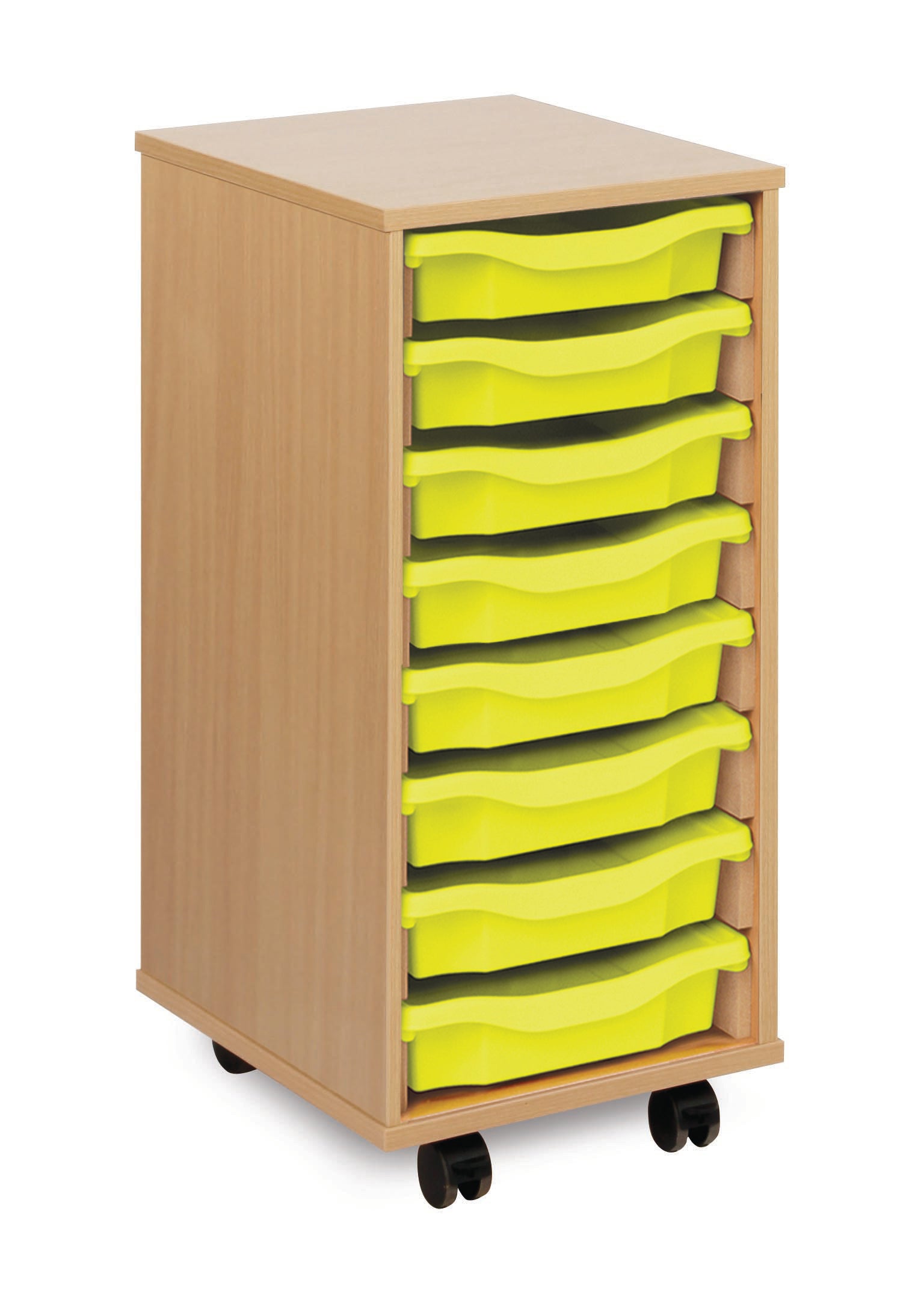 8 Tray Beech MFC storage unit, complete with castors, trays and/or shelves (1 column of 8) W360 x D453 x H789mm (inc castors)